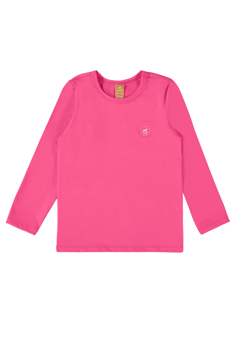 Blusa manga longa infantil com proteção solar FPS +50, tecido antimicrobiano e tecnologia DRY com secagem rápida.