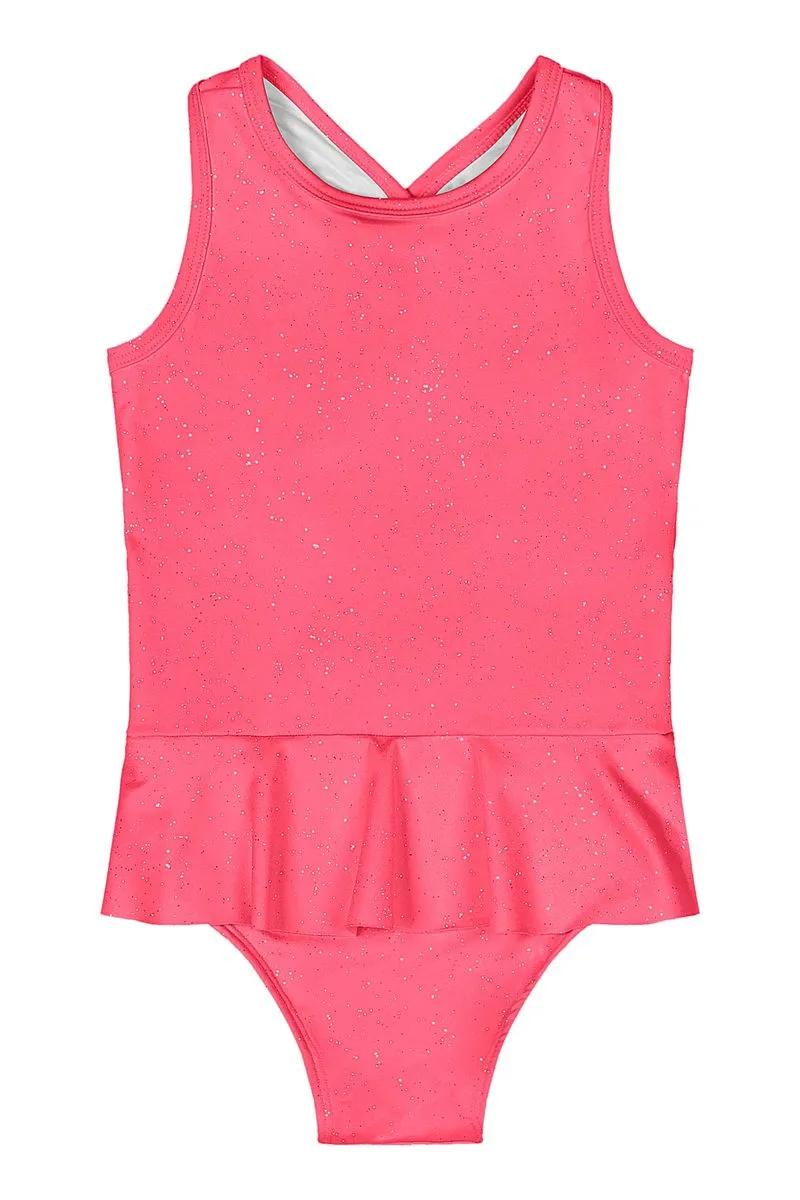 Este maiô infantil é ideal para praia ou piscina, com proteção solar UV FPS 50+ e tecido com brilho sutil em glitter, proporcionando estilo e segurança. A saia com babado e modelagem evasê traz um visual delicado e divertido. Com forro interno, garante maior conforto e segurança para a criança, tornando-a perfeita para momentos de diversão ao ar livre.