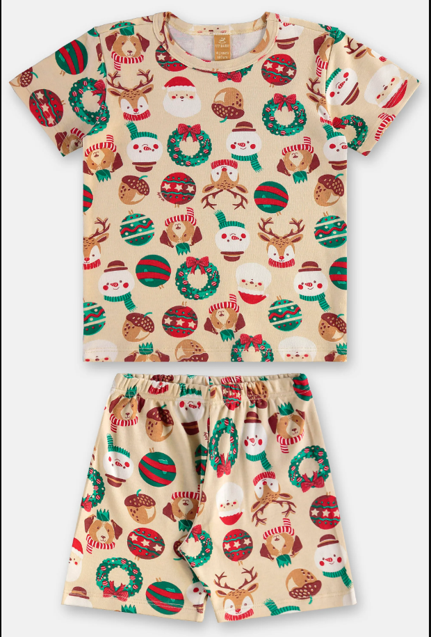 Este pijama infantil de Natal traz alegria e bem-estar para a hora de dormir. A camiseta tem gola arredondada e estampa vibrante, enquanto a bermuda mantém o tema natalino com cós de elástico rebatido que proporciona ajuste confortável. Produzido em suedine leve e macio, garante toque agradável e caimento perfeito. Uma escolha divertida e funcional para noites quentes.